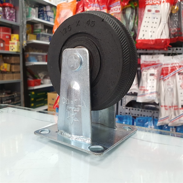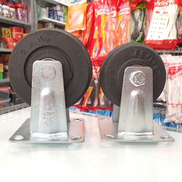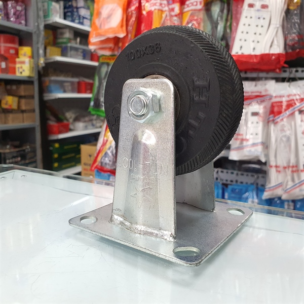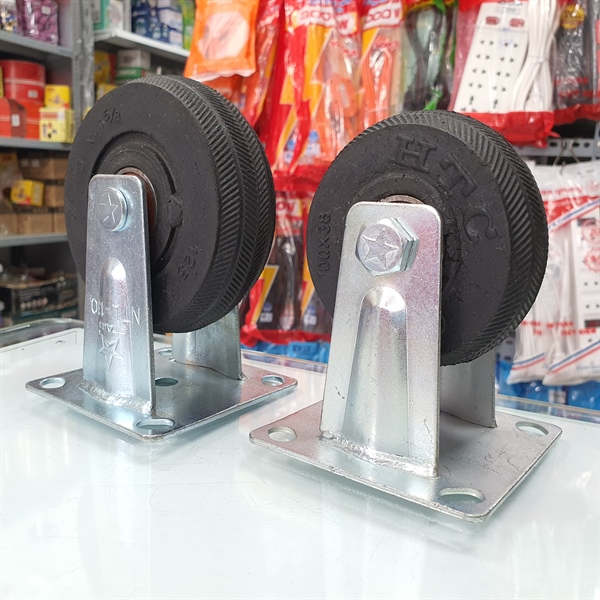 Bánh xe đẩy 10cm 13cm cao su đặc đen cố định - Cái