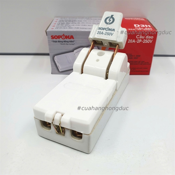 Cầu Dao Đế Sứ 1 Pha 20A-2P Màu Trắng D3H SOPOKA