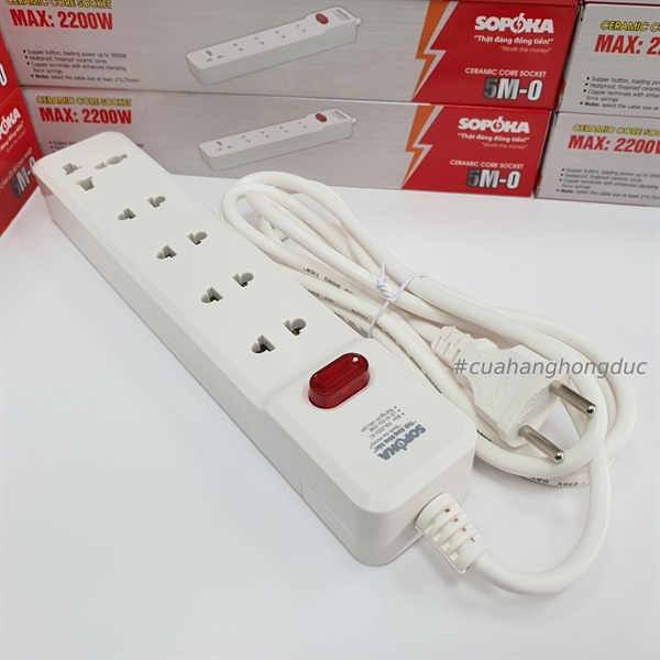 Ổ Cắm Điện 5 Lỗ 2200W Lõi Sứ Có Dây Công Tắc 5M2 SOPOKA