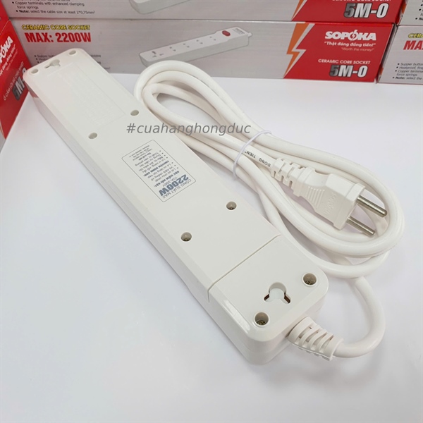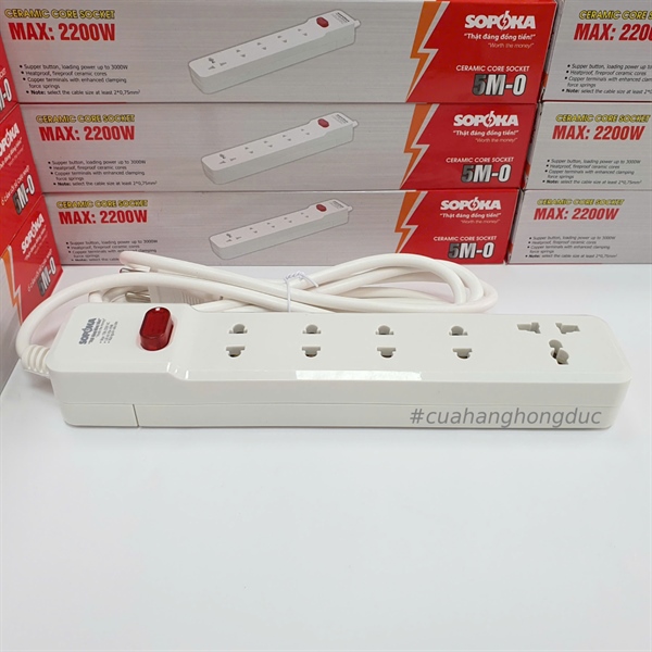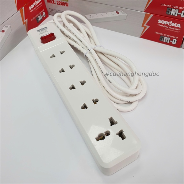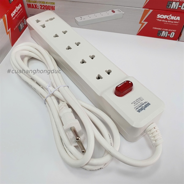 Ổ Cắm Điện 5 Lỗ 2200W Lõi Sứ Có Dây Công Tắc 5M2 SOPOKA - Cái