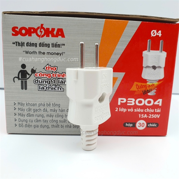 Từ khóa: Phích cắm sopoka p3004, phích cắm chịu tải 3000w, phích cắm Ø4, phích cắm 15a 250v, phích cắm công trình, phích cắm siêu chịu tải sopoka.